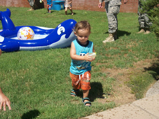 Saturday my mom's drill unit had 'family day' so we got to go hang out with her and her peeps for a few hours, eat food, color, paint, blow bubbles, and get wet! Dreydan was so excited to hang out with his buddy Max all weekend too.